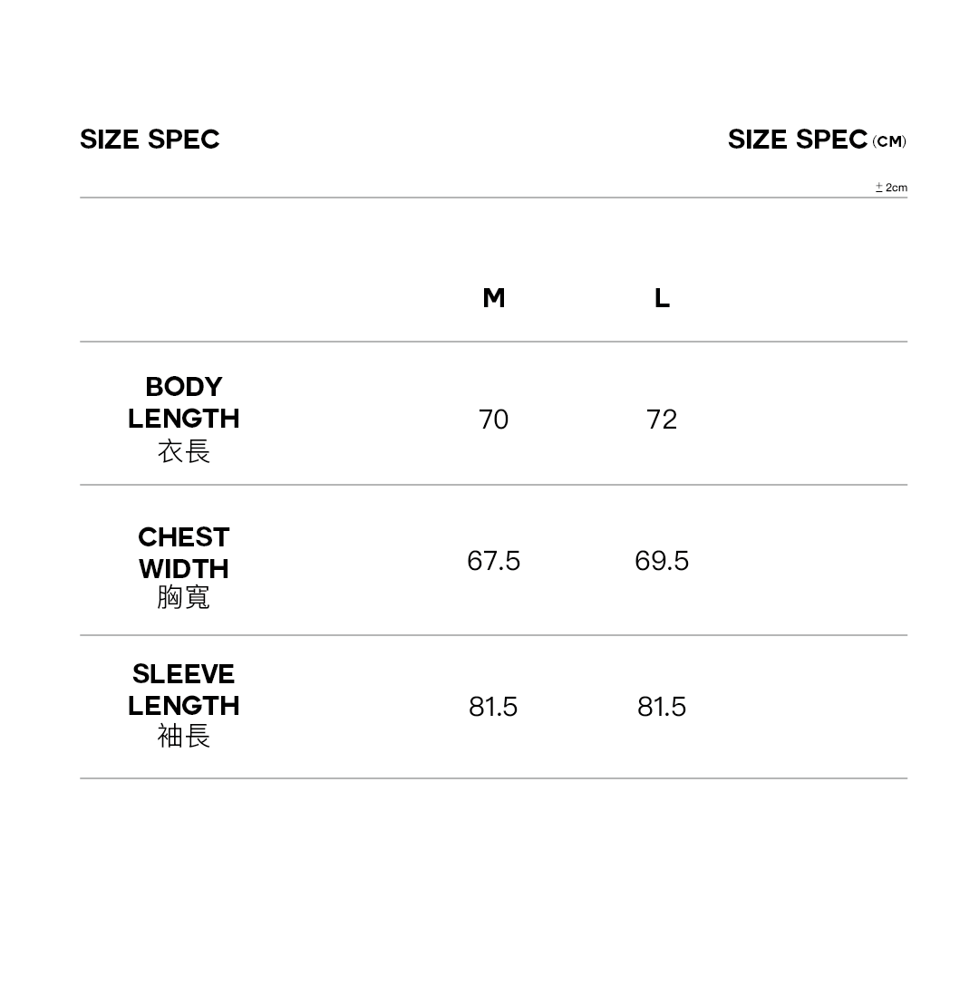L 胸寬69.5 袖長81.5 衣長72 CM