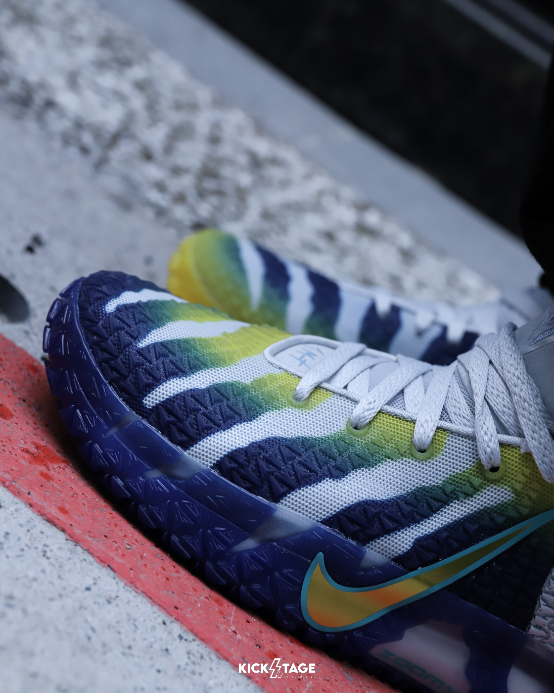 Ja 和我們的設計師坐下來討論,他想傳達的訊息非常明確。 「我告訴他們,別害怕, 勇於突破,」Ja 說道。 成效如何? Ja Swoosh 標誌是垂直的 Swoosh 標誌,旁邊是塗鴉風格的「A」,搭配斑駁的刮痕,打造出一款敢於突破、準備迎接聚光燈的前衛之作。