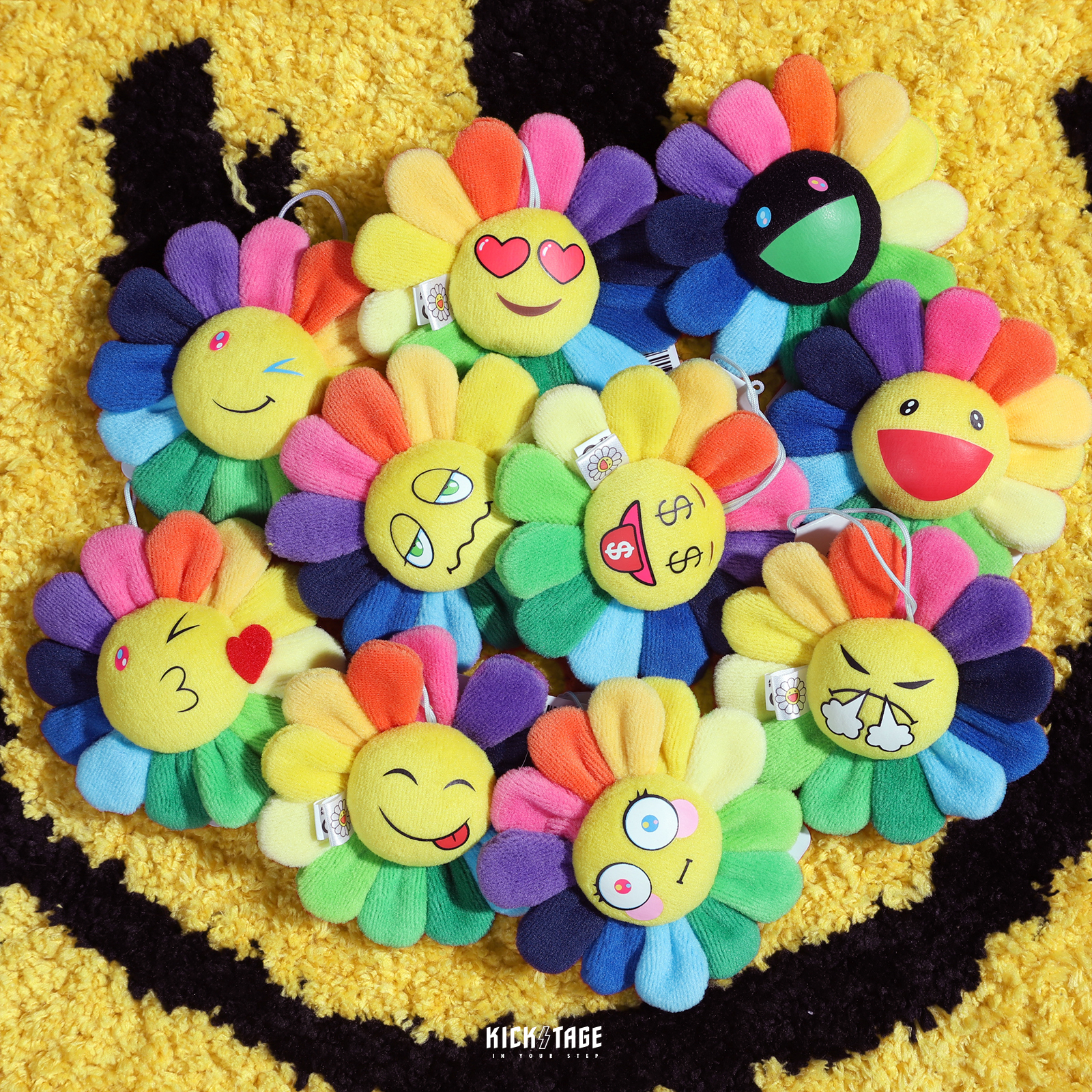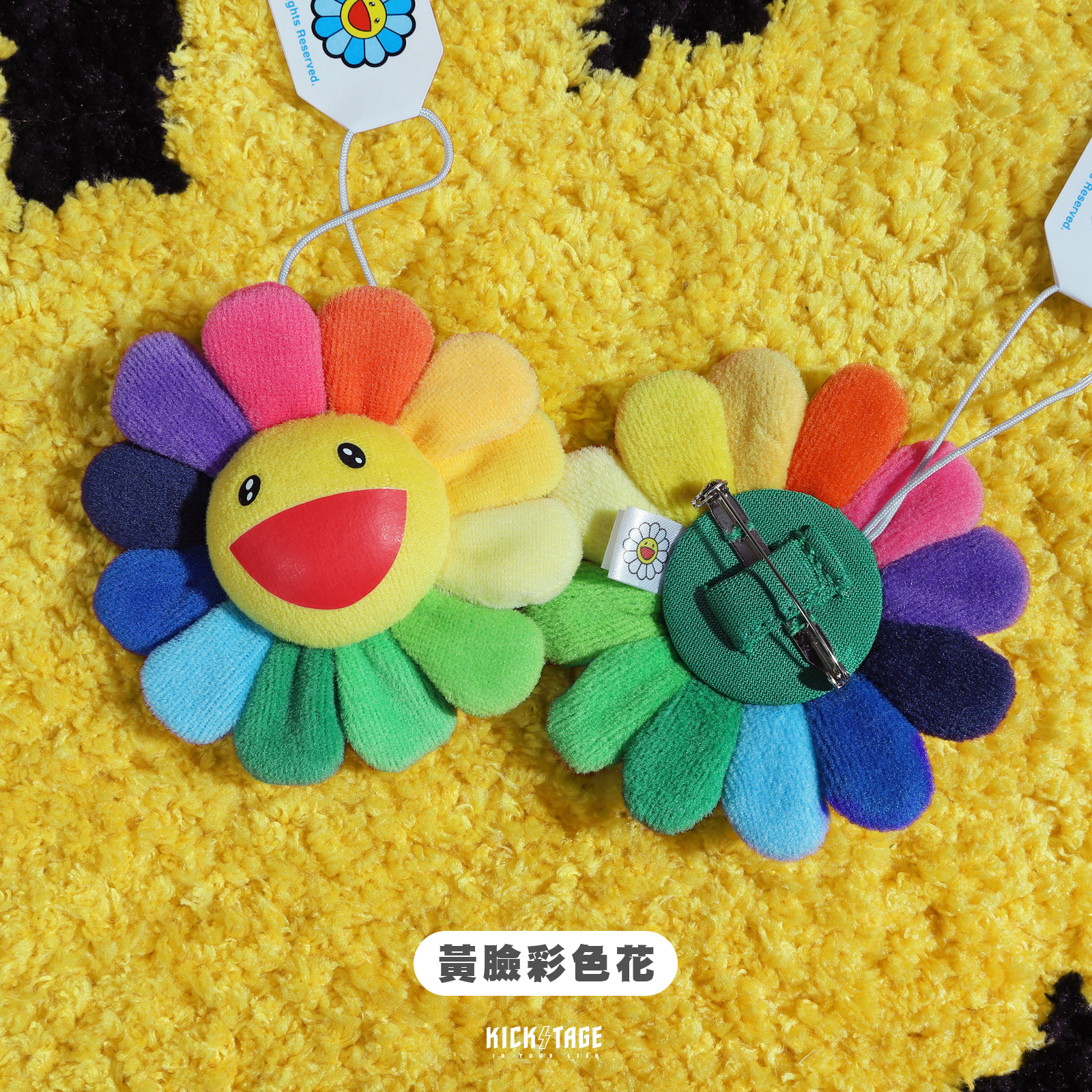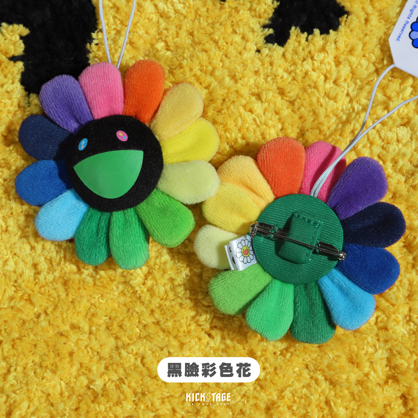 村上隆 Kaikai Kiki Flower Emoji 彩色 表情符號 潮流 太陽花 雙面吊飾 胸花 胸針 小物 收藏 日本【354-0046】