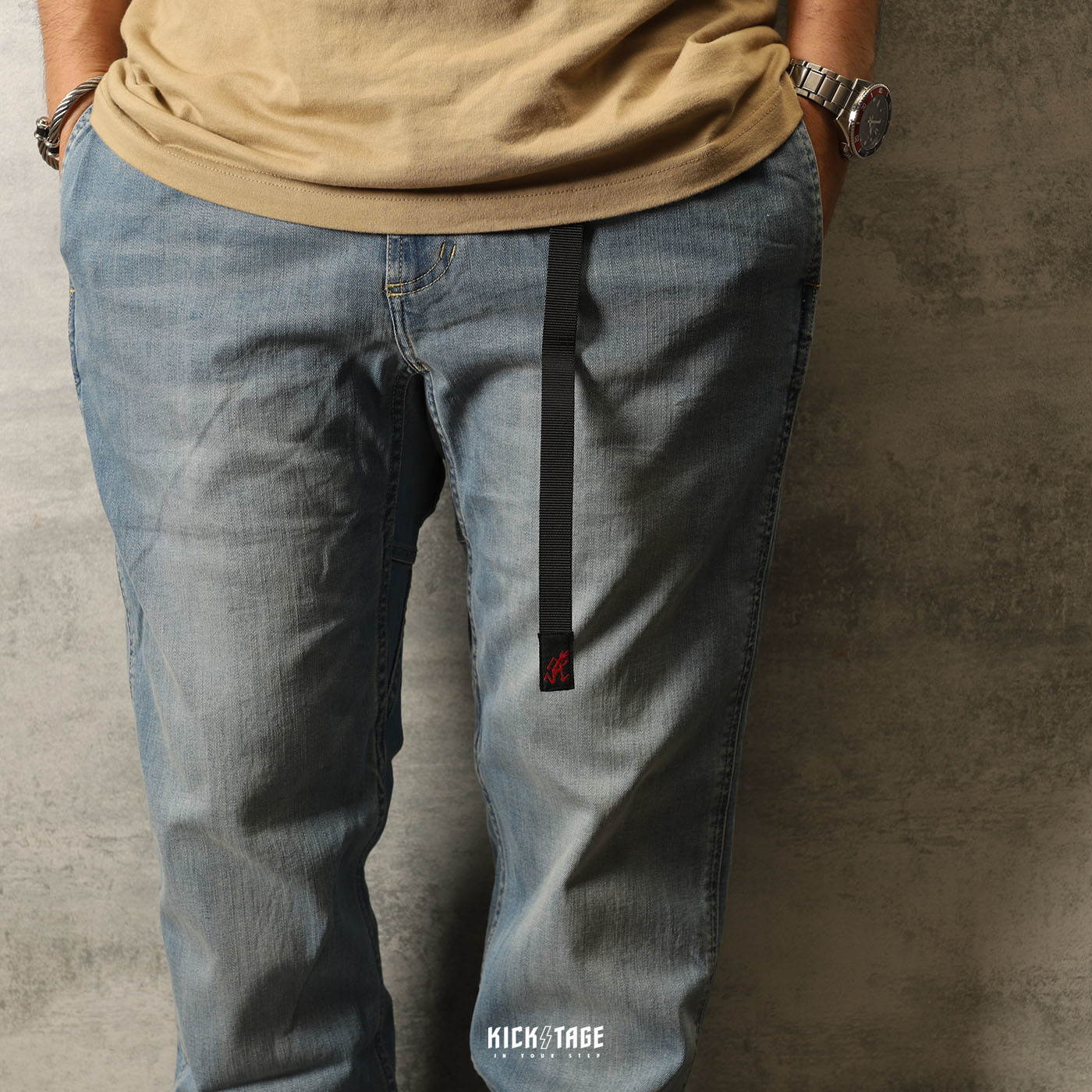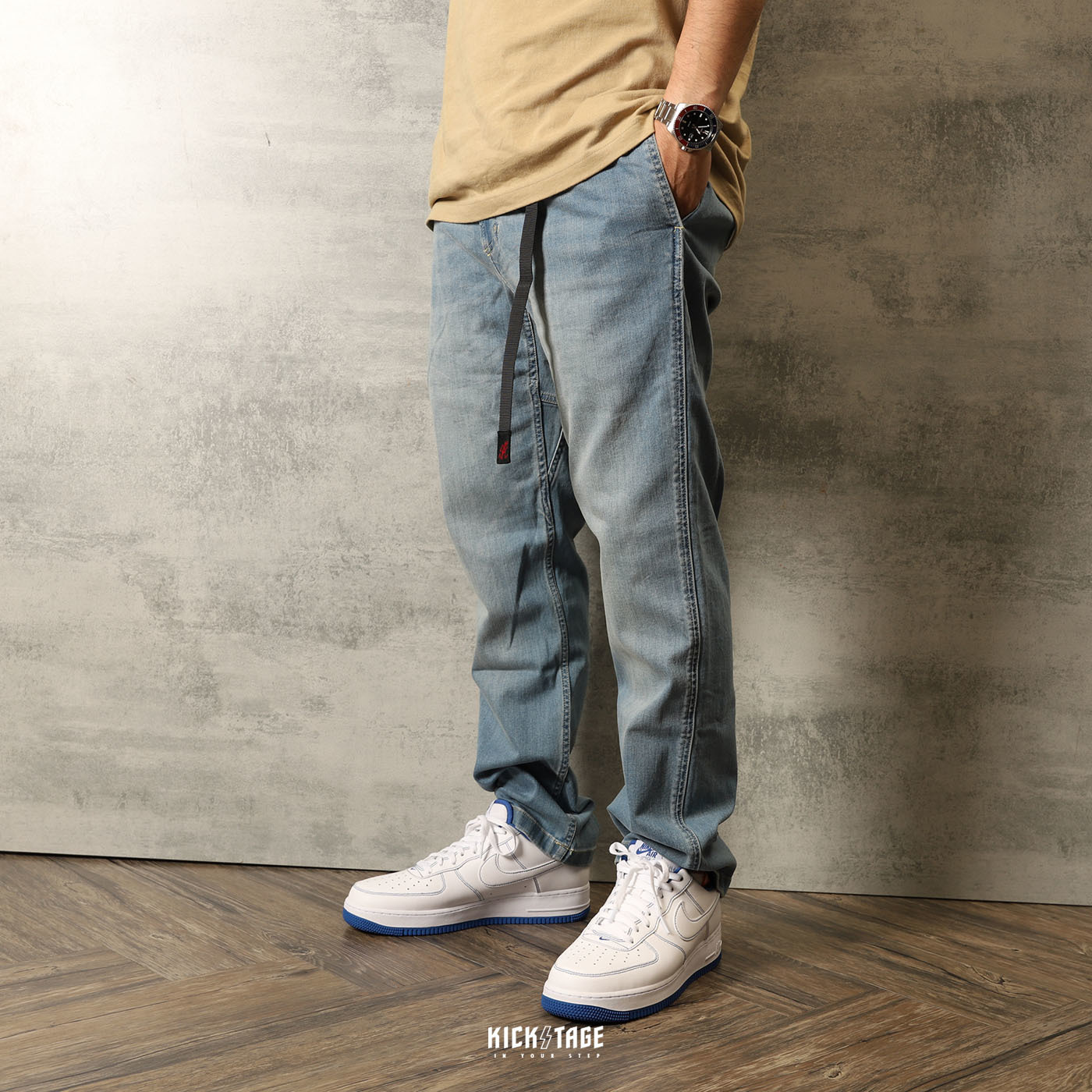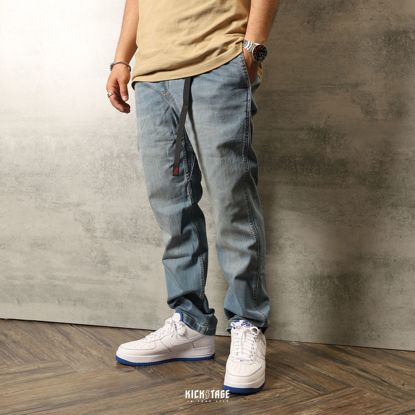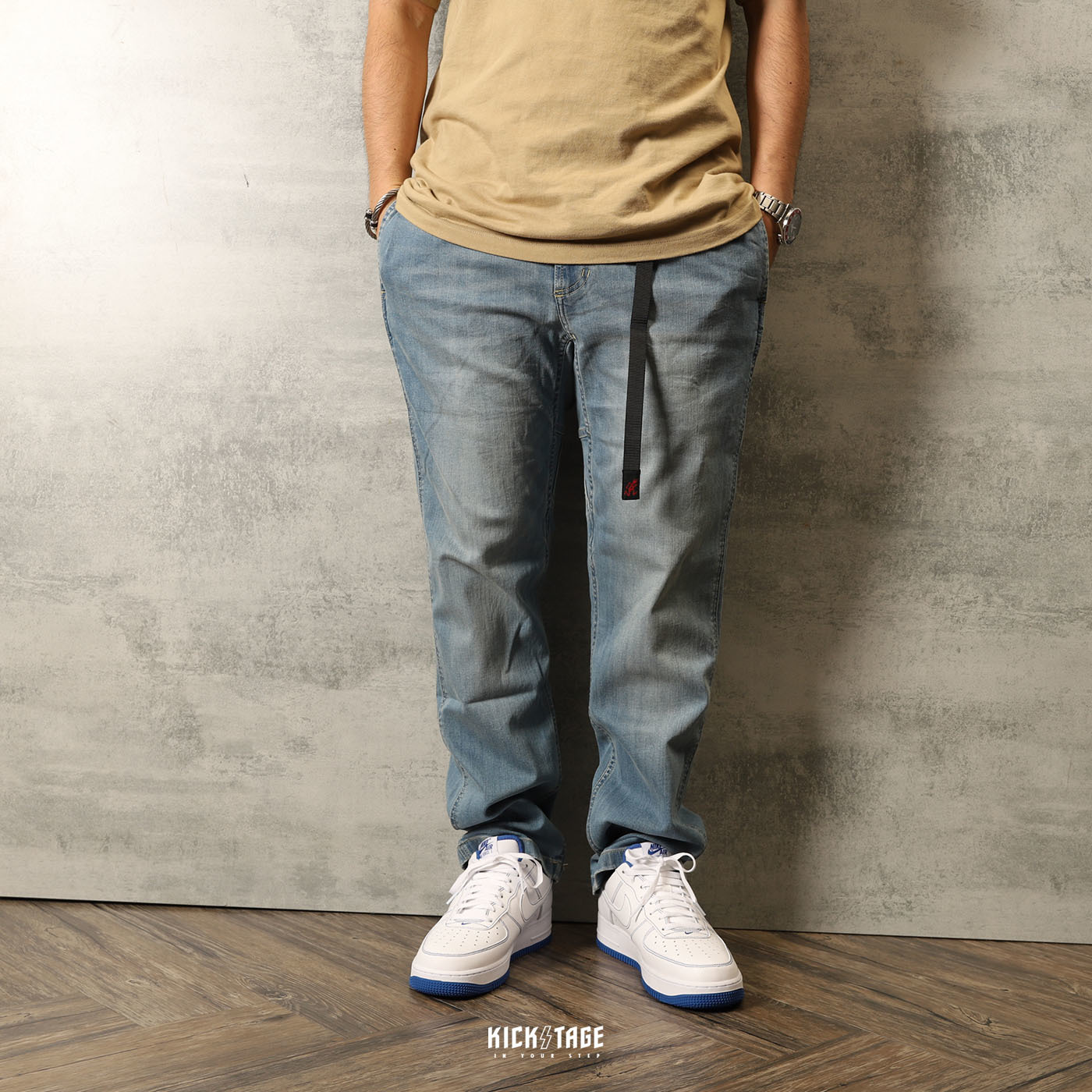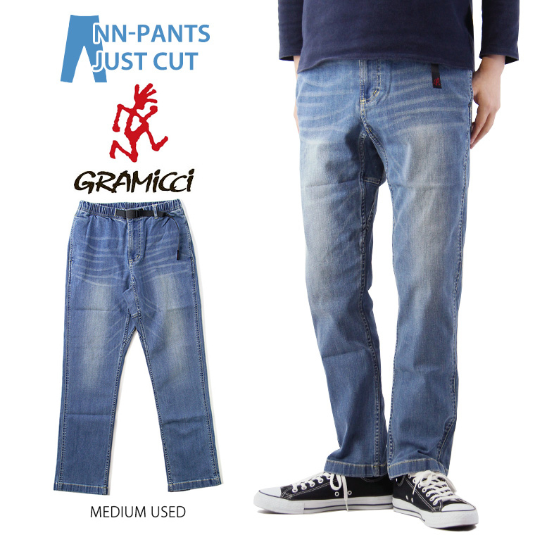**特價商品售出不退換**GRAMICCI DENIM NN-PANTS JUST CUT 淺牛仔 丹寧 牛仔 腰帶 窄管 修身 長褲【8817-DEJ-MU】