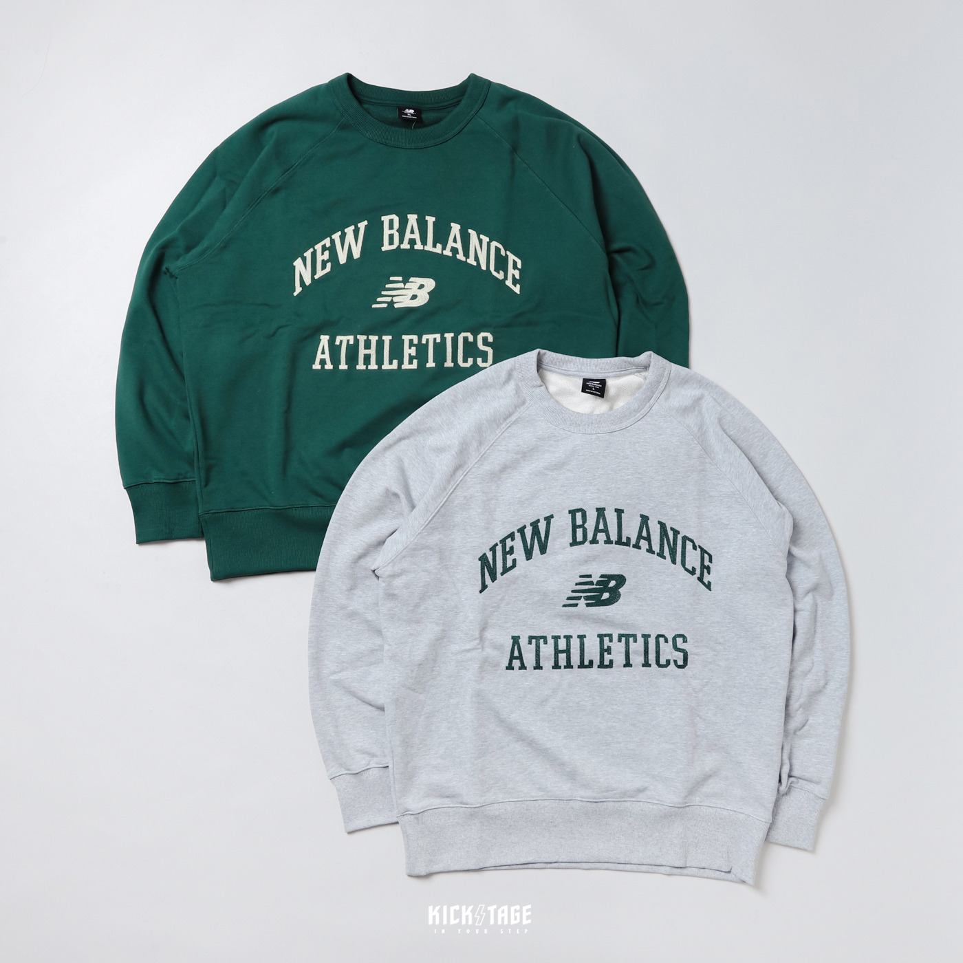 **特價商品售出不退換**New Balance Athletics Varsity Fleece Crewneck Chain Stich 灰 綠 鎖鏈刺繡 毛線圈 長袖 衛衣【AMT33550】