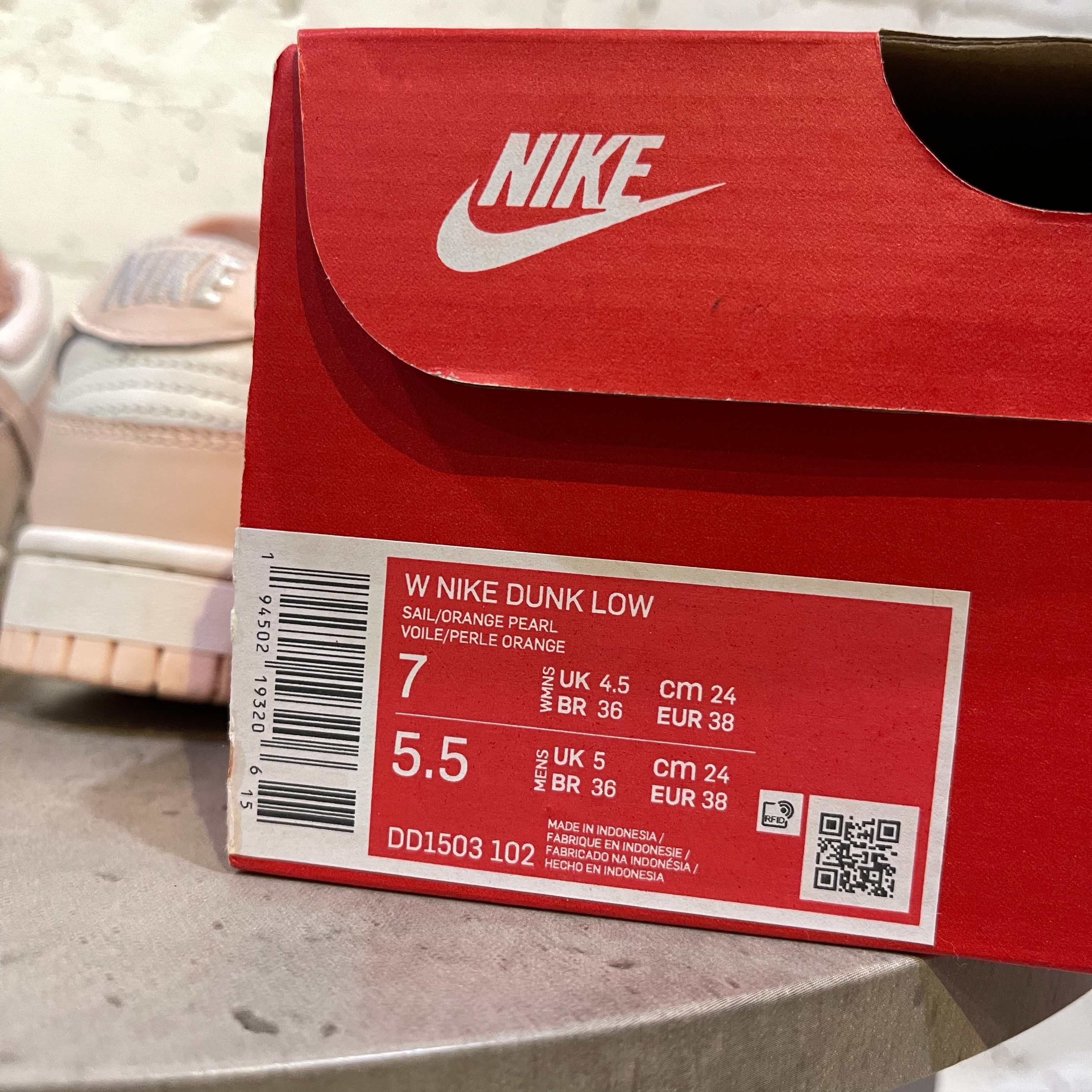 【二手 US7/24CM】 NIKE DUNK LOW Orange Pearl 珍珠粉 櫻花粉 白粉 休閒鞋【DD1503-102】