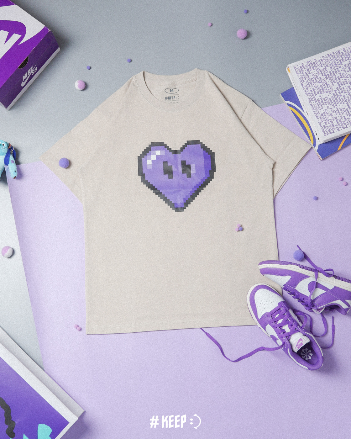 PIXEL SEPTEMBER HEART TEE / 月份限定 九月紫 像素短TEE
