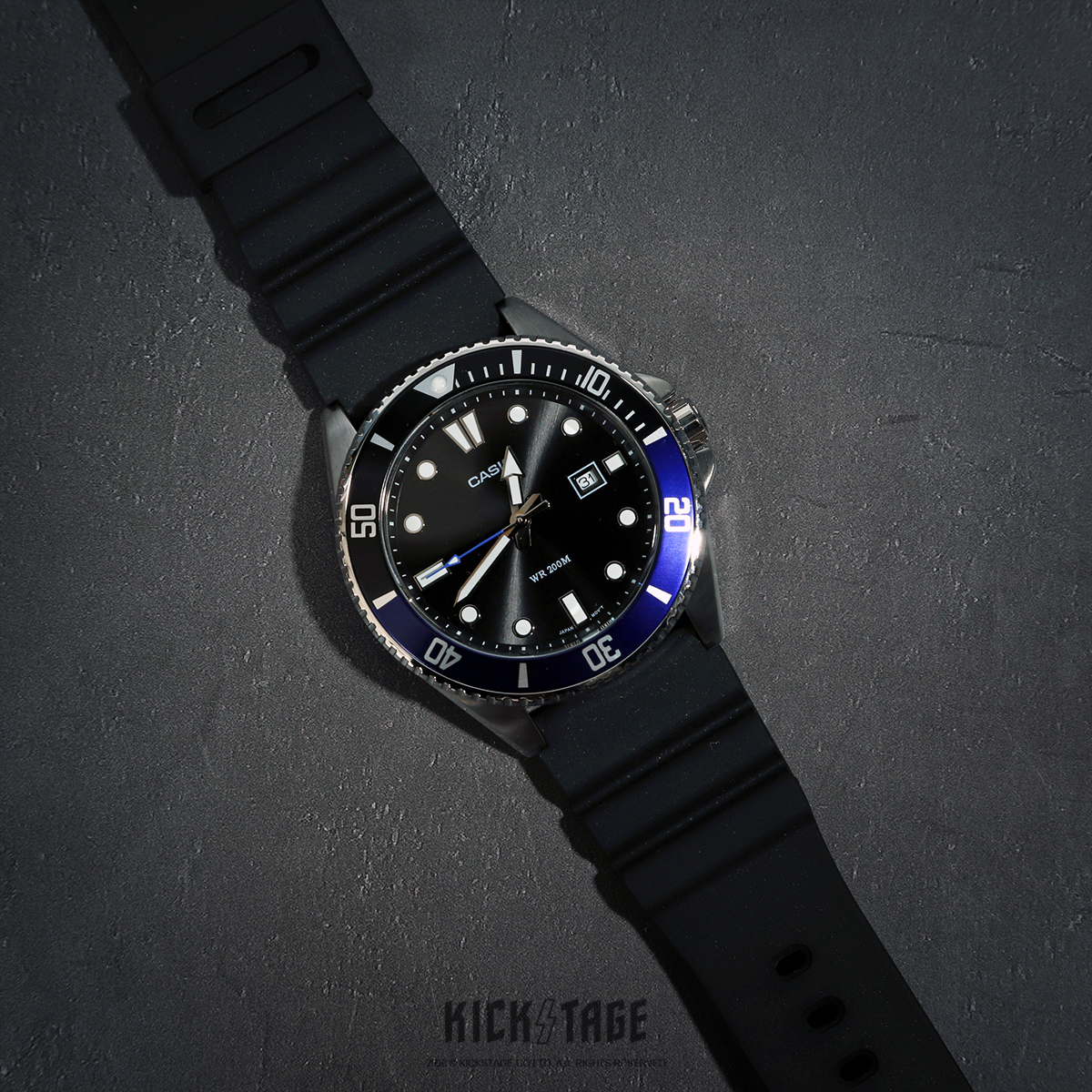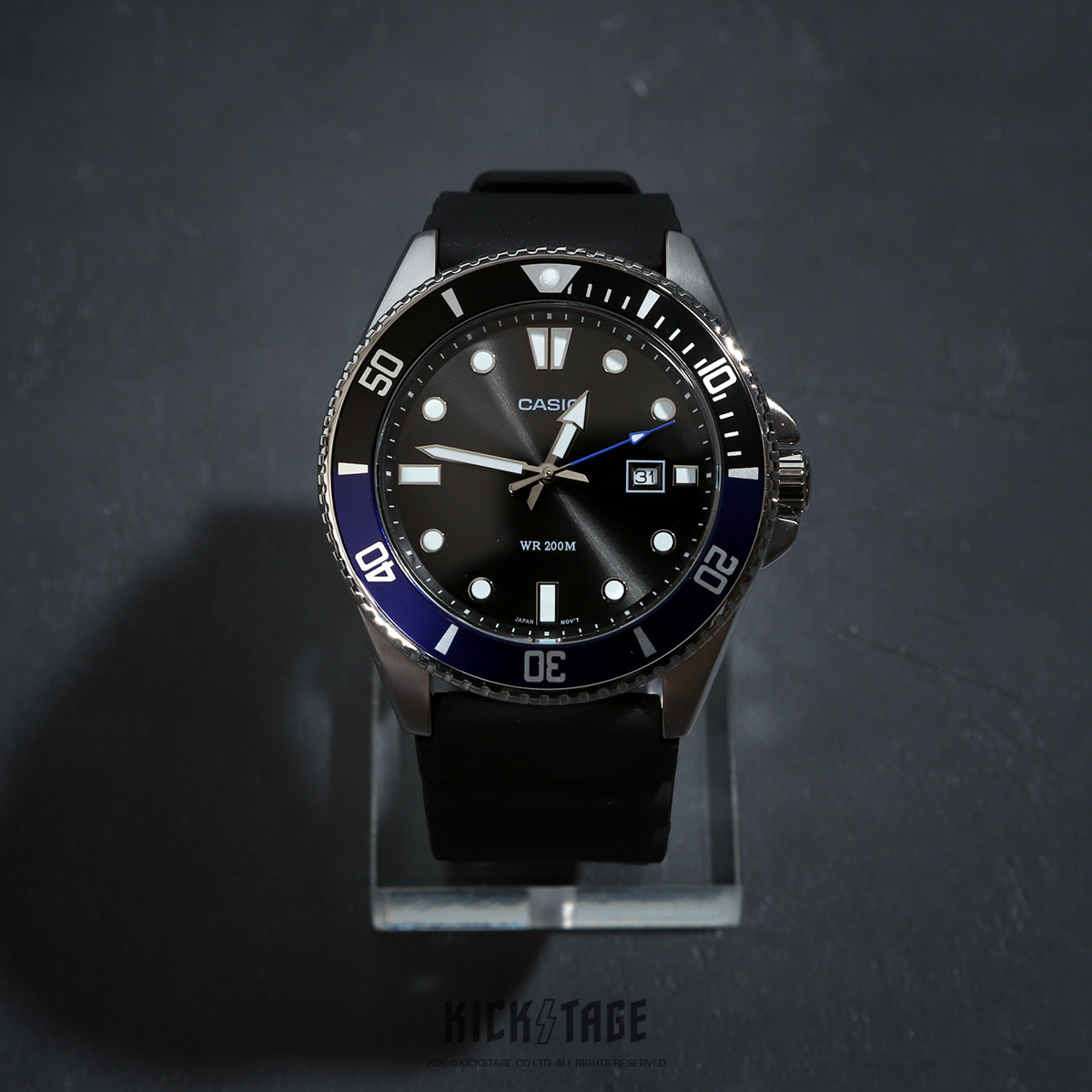 功能上搭載防水200米、日期顯示與旋轉錶圈等功能,經典設計絕對是運動時尚的必備單品。