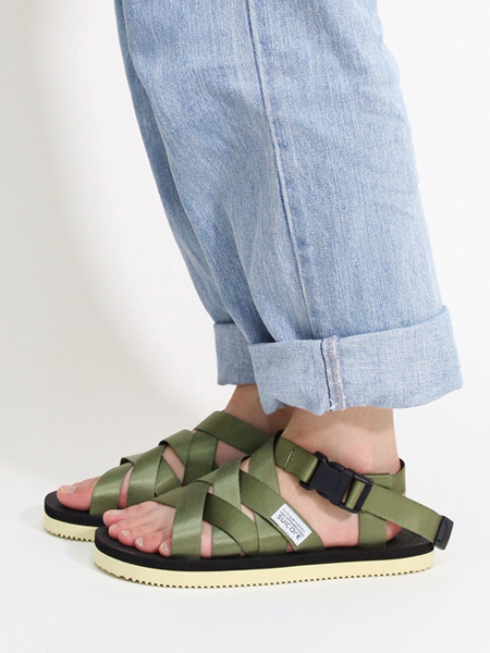 [出清商品售出無退換] SUICOKE SAMA OG-083 墨綠色 奶油底 可調節 緞帶 涼鞋 塑膠扣 黃金大底【SK20083OL】